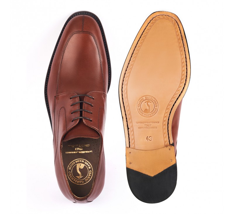 Doppelt genähte Naturledersohle mit extra verstärktem Naturlederabsatz.