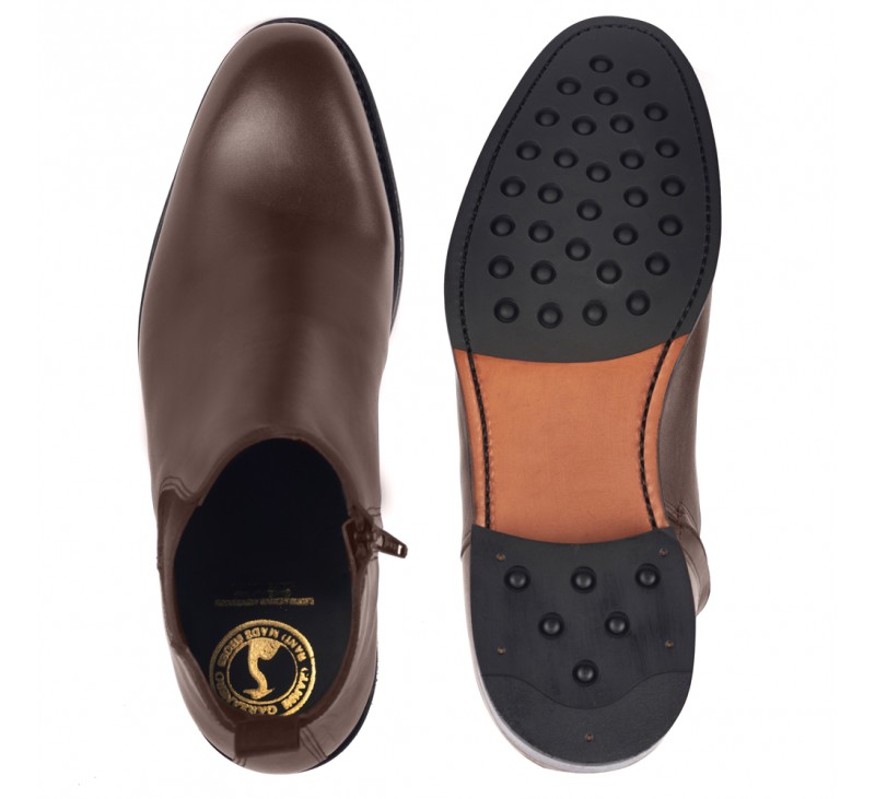 Flavio. Stiefel die größer machen in Goodyear-welt-Qualität. Goodyear-welt ist die internationale Bezeichnung für eine bestimmte Art von Schuhen. Es ist das beste Schuhwerk auf dem Markt, und obwohl es durch sein besonderes Herstellungssystem im Neuzustand steifer ist, ist es so konzipiert, dass es den Füßen totalen Komfort und Pflege bietet. Es ist eine Garantie für handwerkliches Können, da es sich um ein Produkt handelt, das nur in Handarbeit hergestellt werden kann und dafür Rohstoffe von höchster Qualität verwendet werden. Es lässt sich sowohl zu Anzügen als auch zu Freizeitoutfits kombinieren. Die moderne Leder-Gummisohle rundet das komfortable Geherlebnis mit Bravour ab. Es wird empfohlen, Stiefel, die die Höhe erhöhen, mit einer Schuhcreme und einem trockenen Tuch oder einer Polierbürste zu pflegen. Du kannst mit einem Polierschwamm nachbessern.