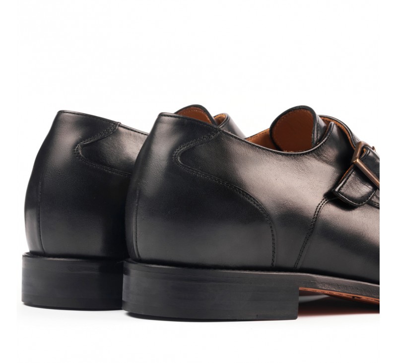 Chaussures Réhaussantes. Dessus en peau de veau marocain. Doublure en peau fine. Semelle en cuir naturel et cousu. Talon en cuir naturel renforcé. Chaussure à boucle, embelli par ses coutures latérales: la solution parfaite pour un look habillé.