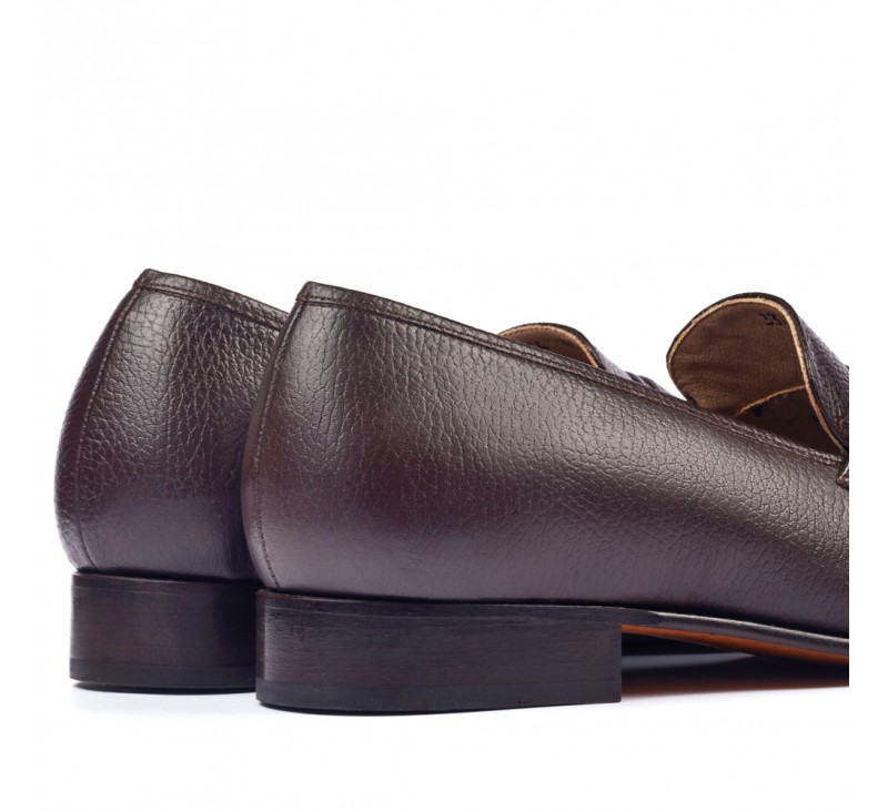 Boy uzatan ayakkabı. Ayakkabı modeli, hakiki dana derisinden klasik tarzında yapılmıştır. İçtaban ve astar, hakiki deriden üretilmiştir. Kösele taban yürürken ek konfor için kırıştırma ile takviye edilmiştir. Ayakkabının ana aksanı konfor ve pratiklik üzerine yapılmıştır. Avantajları: • İtalyan tasarım • pabuç kolaylığı, denge, dayanıklılık ve kusursuz işçiliği. Kirlenmesi durumunda ayakkabı üzerinden tozu kuru pamuklu bezle silmek ve sonra ayakkabıyı renksiz krem ile parlak olması kadar cilalamak gerekmektedir.
