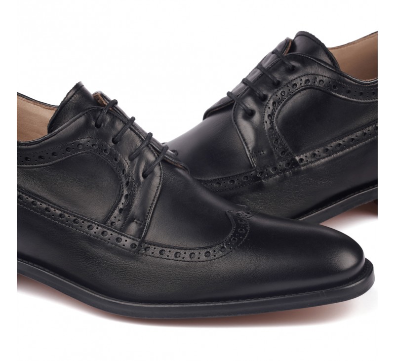 Boy uzatan ayakkabı. Brogueing detaylı, klasik bağcıklı deri ayakkabı. Ayakkabı modeli, hakiki dana derisinden klasik tarzında yapılmıştır. İçtaban ve astar, hakiki deriden üretilmiştir. Kösele taban yürürken ek konfor için kırıştırma ile takviye edilmiştir. Ayakkabının ana aksanı konfor ve pratiklik üzerine yapılmıştır. Avantajları: • İtalyan tasarım • pabuç kolaylığı, denge, dayanıklılık ve kusursuz işçiliği. Kirlenmesi durumunda ayakkabı üzerinden tozu kuru pamuklu bezle silmek ve sonra ayakkabıyı renksiz krem ile parlak olması kadar cilalamak gerekmektedir.